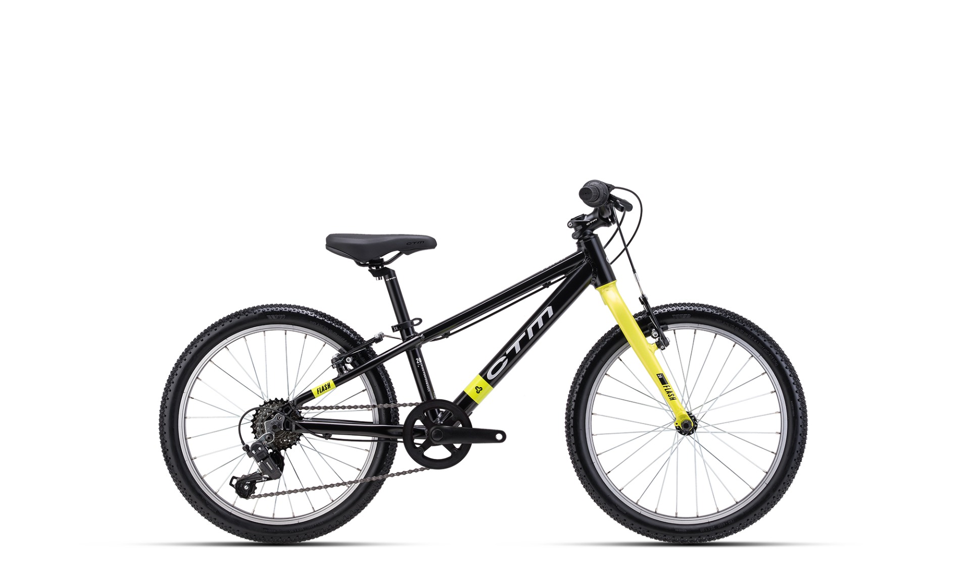 Rám: FLASH, AL 6061, 11"Vidlice: ALLOY 6061 20"Řazení: Shimano RV 300/6 speedPřehazovač: Shimano Tourney RD-TY200Vícekolečko: Shimano MF-TZ500 6 speed 14-28TPřevodník: Prowheel, 32T, 114mmBrzdy: Alloy V-brakeRáfky: CTM 406X20, 28H, blackPláště: 20x1.95" 30TPI skinwallNáboje: Matrix alloy 28HPedály: Junior HF-696Řetěz: KMC Z33Představec: CTM Alloy 60/25,4 mmŘídítka: CTM alloy 540mm 40mm riseHlavové složení: 1 1/8" DIA:25.4/34/30mmSedlo: CTM kids 232x140mmSedlovka: ALU seatpost Ø27,2 x 200mmRychlostí: 6 speed